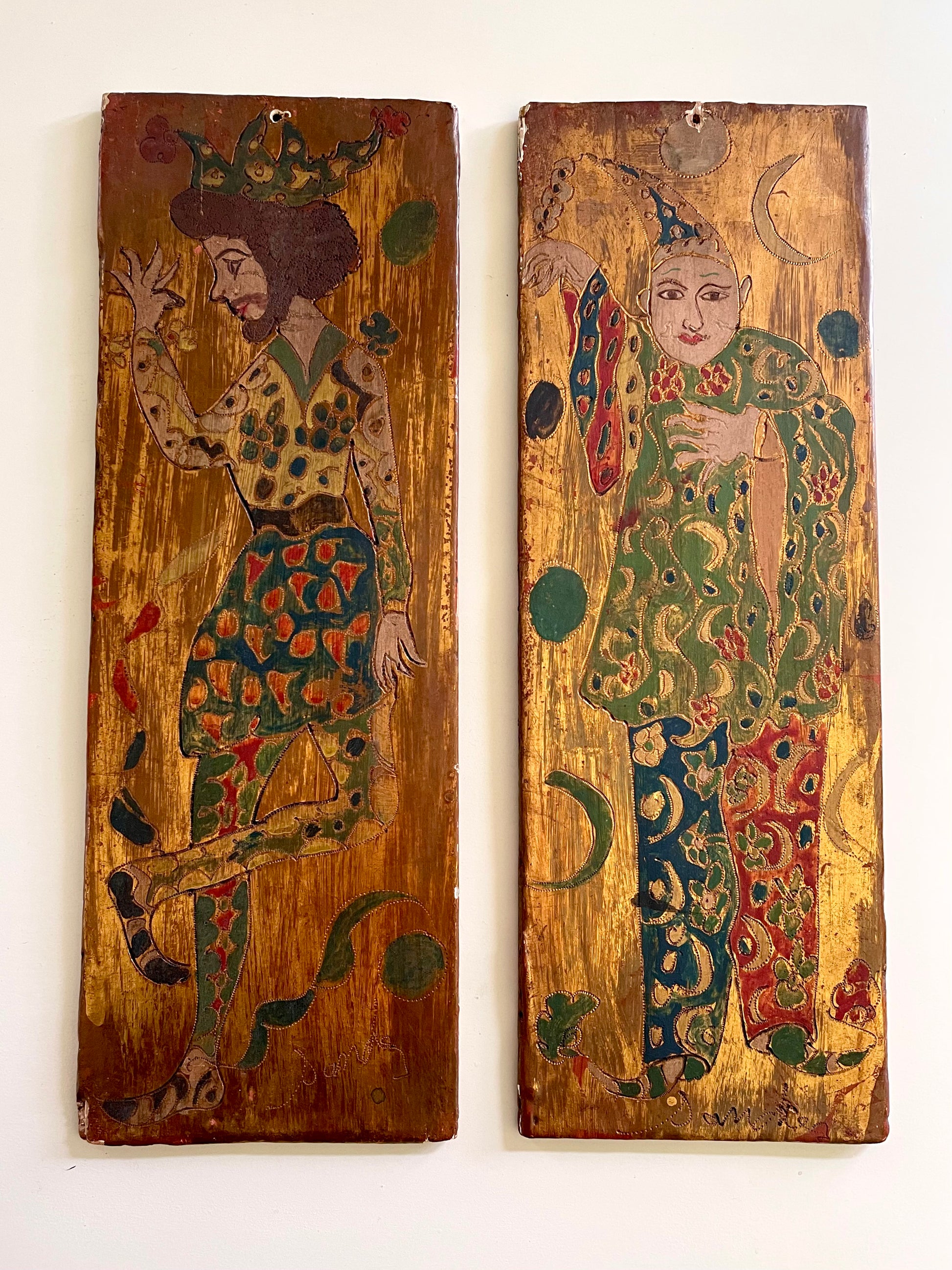 Pair of Mid Century Modern wooden wall panels. Made in Italy in a Florentine Style finish. Price is for the Pair.
